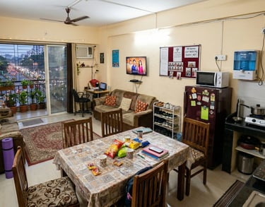 Comfortable rented accommodation with meals, housekeeping, and amenities, providing a homely environment for students or professionals in a new city.